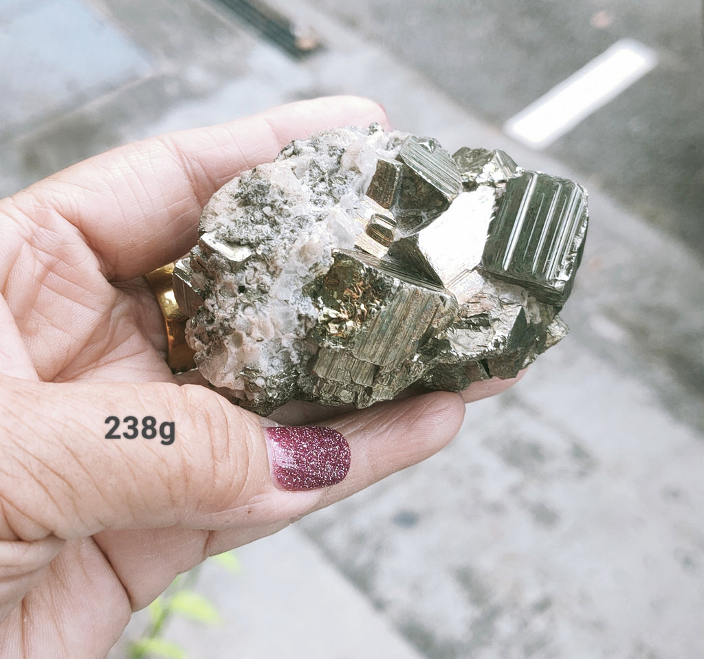 Pyrite are great for attracting wealth and abundance especially for businessmen.  It is also a protective stone; shields all forms of negative energies.