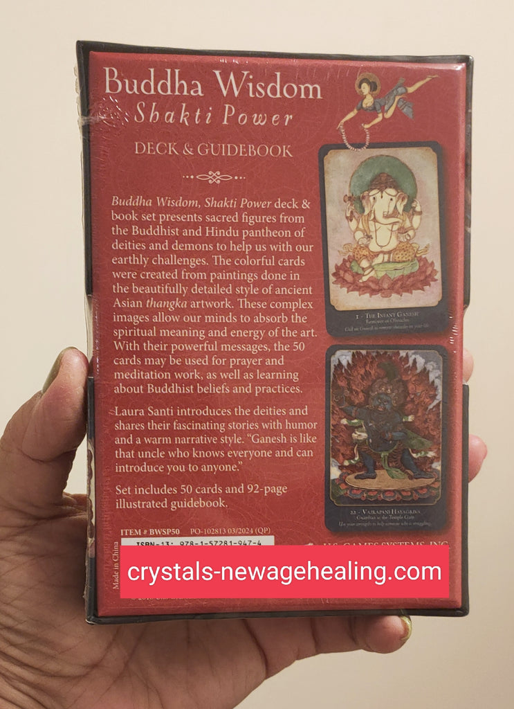This elegant set presents sacred figures from the Buddhist and Hindu pantheon of deities to help us with our earthly challenges. The colorful cards were created from Santi's thangka paintings, done in the ancient Asian style. With their powerful messages, the 50 cards may be used for prayer and meditation work, as well as learning about Buddhist beliefs and practices.