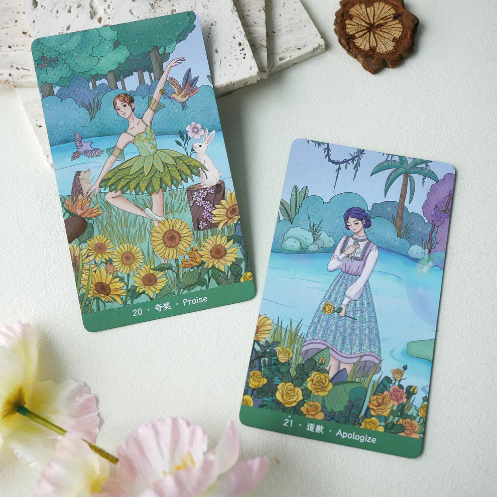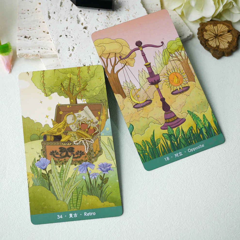 Taking inspirations from nature, this oracle encourages users to look for guidance in natural creations and serves as a medium through which the Mother Nature may enlighten you with her wisdom. It is a handy tool for self-exploration. Feel free to engage with the cards in creative ways.